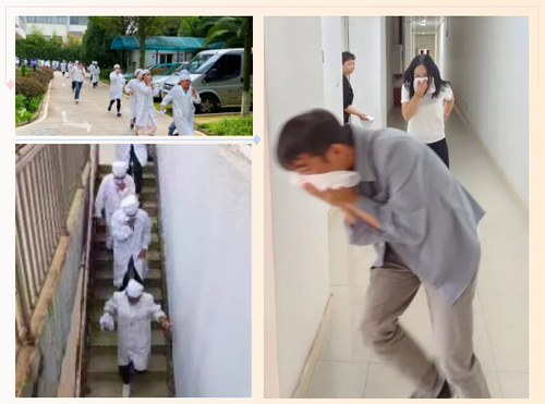 為準確把握和了解員工應急處置能力和水平,本次活動模擬火災發生,檢驗員工應對突發事件的處置和逃生能力。火災警報聲響起,員工們立即在指揮員的指揮下就近選擇逃生樓梯有序向樓下疏散,疏散過程中員工們壓低身子,用濕毛巾或衣物捂住口鼻,防止煙氣進入,整個過程井然有序。為了豐富員工對應急器材的使用及體驗,演練采用滅火毯進行滅火,加強應急處理方法。滅火毯滅火原理:覆蓋火源隔絕空氣、適用于初期火災、也可披在身上進行逃生,現場工作人員對滅火毯的使用方法和注意事項都進行了講解,讓員工現場進行實地體驗,2人一組、佩戴手套、進行滅火演練。